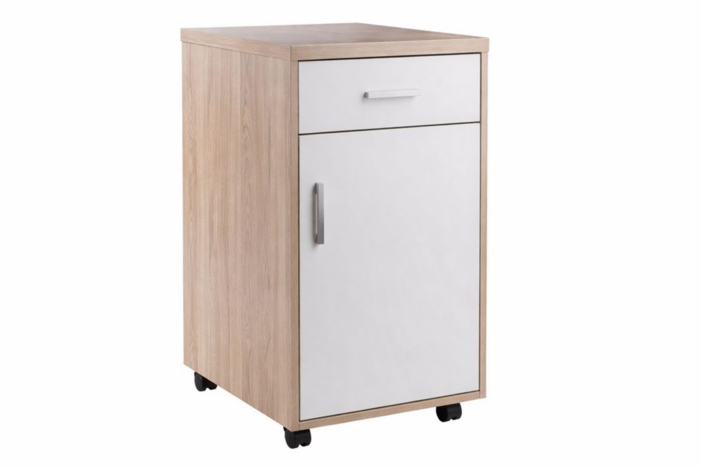 Cassettiera in MDF con Ruote in Rovere e Bianco