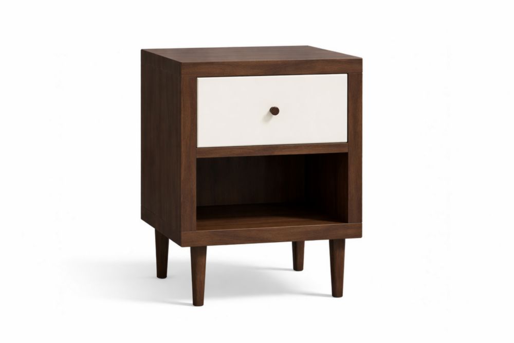 Comodino in Legno massello con cassetto bianco