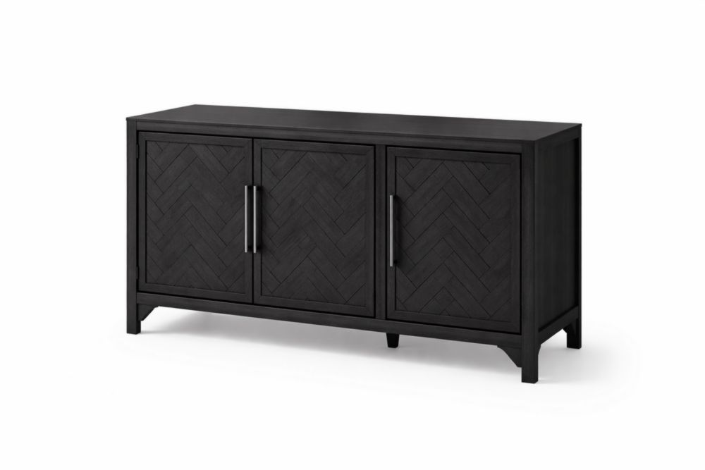 Credenza in legno 3 ante nero con maniglie in Acciaio inossidabile