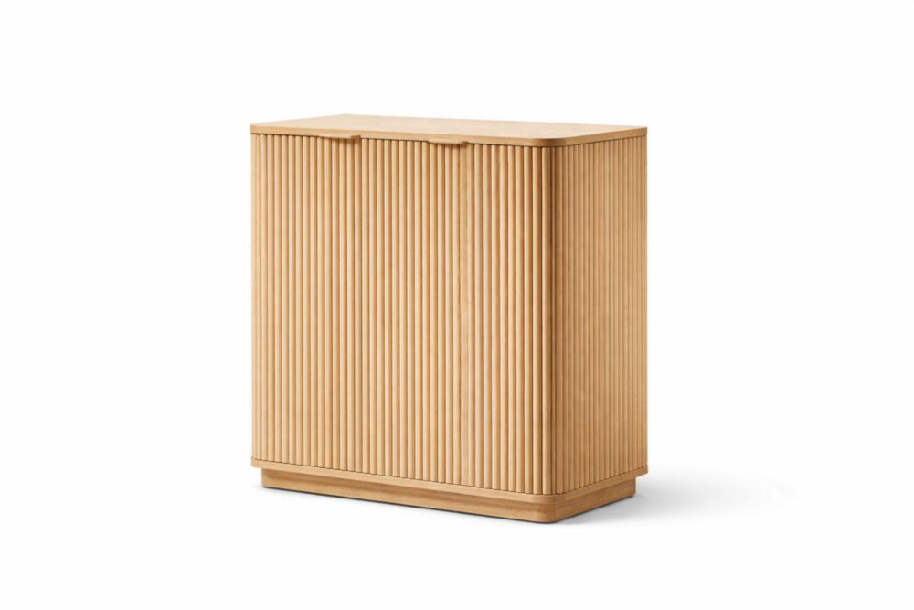 Credenza in legno chiaro con ante scanalate
