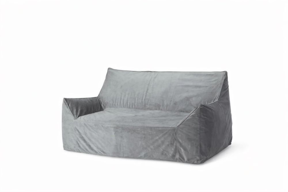 Divano a sacco per due persone, rivestito in velluto morbido.
