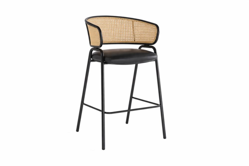 Sgabello da Bar Acciaio inossidabile con Seduta in Pelle e Schienale in Rattan