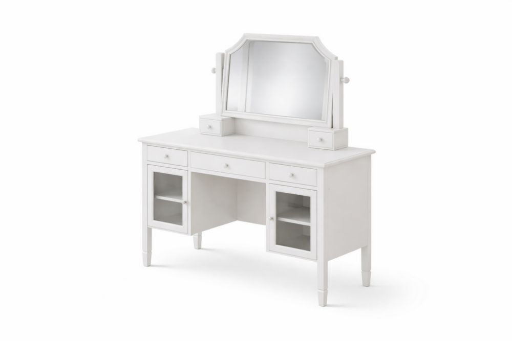Tavolo da Toilette in Legno massello Bianco con Specchio e Cassetti